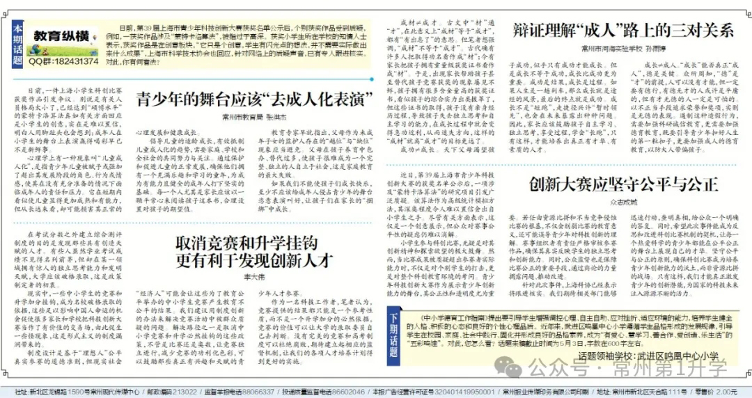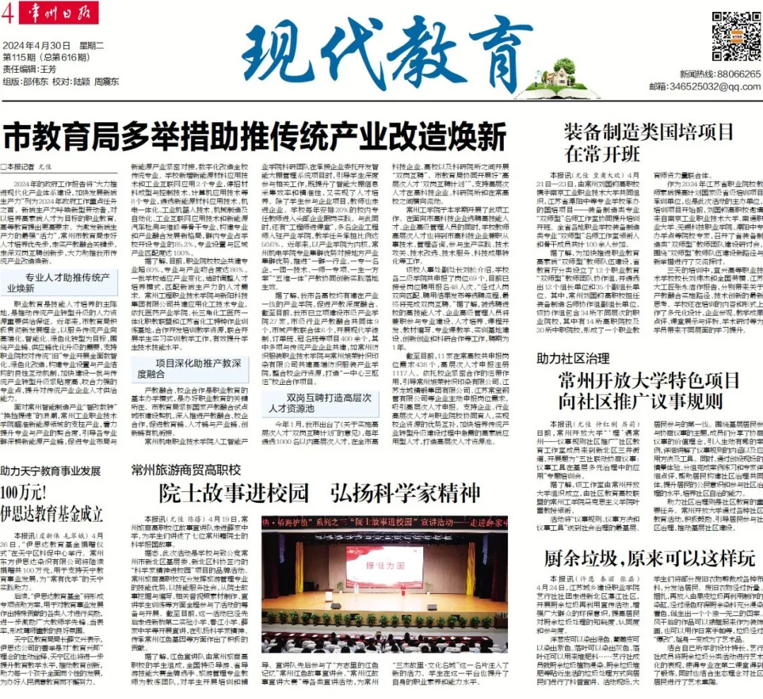 4月30日 常州日报现代教育A4版市教育局多举措助推传统产业改造焕新