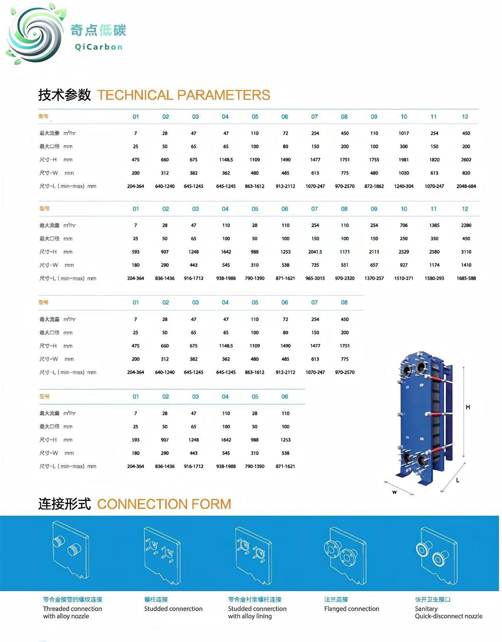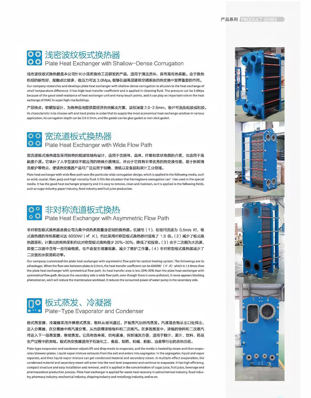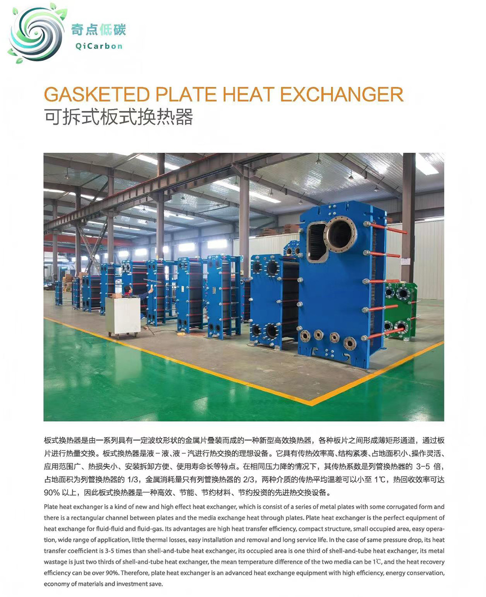 板式换热器是由一系列具有一定波纹形状的金属片叠装而成的一种新型高效换热器,各种板片之间形成薄矩形通道,通过板片进行热量交换。板式换热器是液一液、液-汽进行热交换的理想设备。它具有传热效率高、结构紧凑、占地面积小、操作灵活、应用范围广、热损失小、安装拆卸方便、使用寿命长等特点。在相同压力降的情况下,其传热系数是列管换热器的3-5倍,占地面积为列管换热器的1/3,金属消耗量只有列管换热器的2/3,两种介质的传热平均温差可以小至1℃,热回收效率可达90%以上,因此板式换热器是一种高效、节能、节约材料、节约投资的先进热交换设备